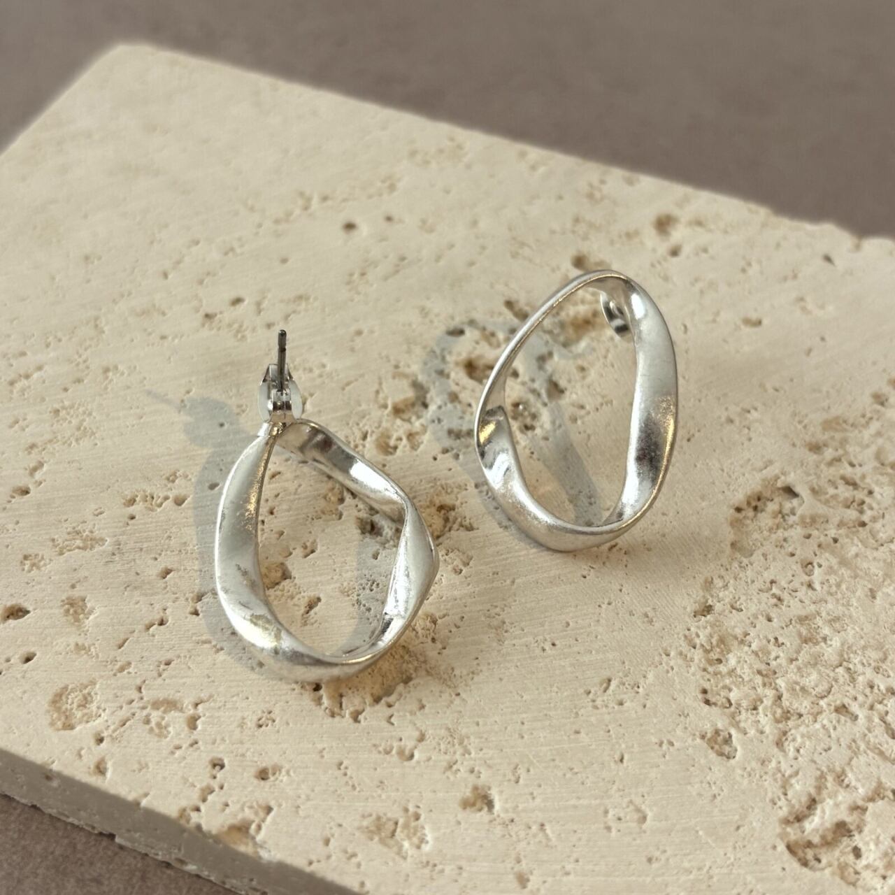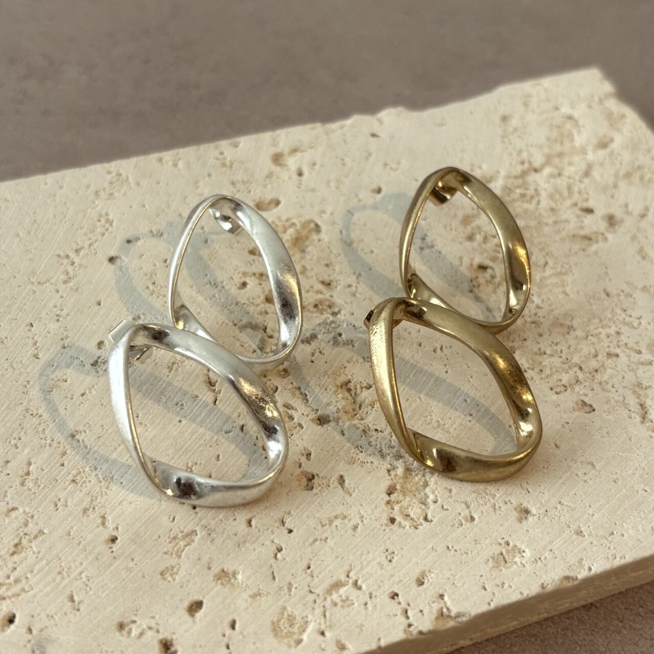 [NYUNYU][韓国ファッション]ねじれサークルピアス シンプル 艶消し アクセサリー ジュエリー ゴールド シルバー