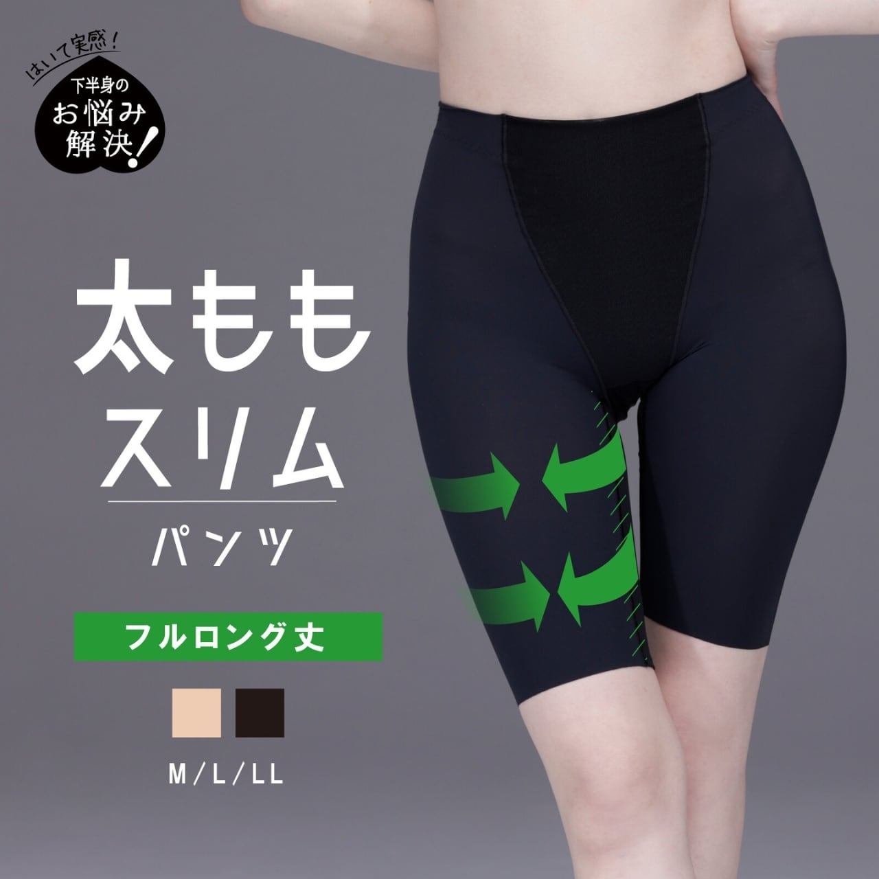 [LECIEN/ルシアン][ロング丈]太ももスリムパンツ ガードル 補正下着 インナー 体型カバー 下半身引き締め ブラック ベージュ M L LL