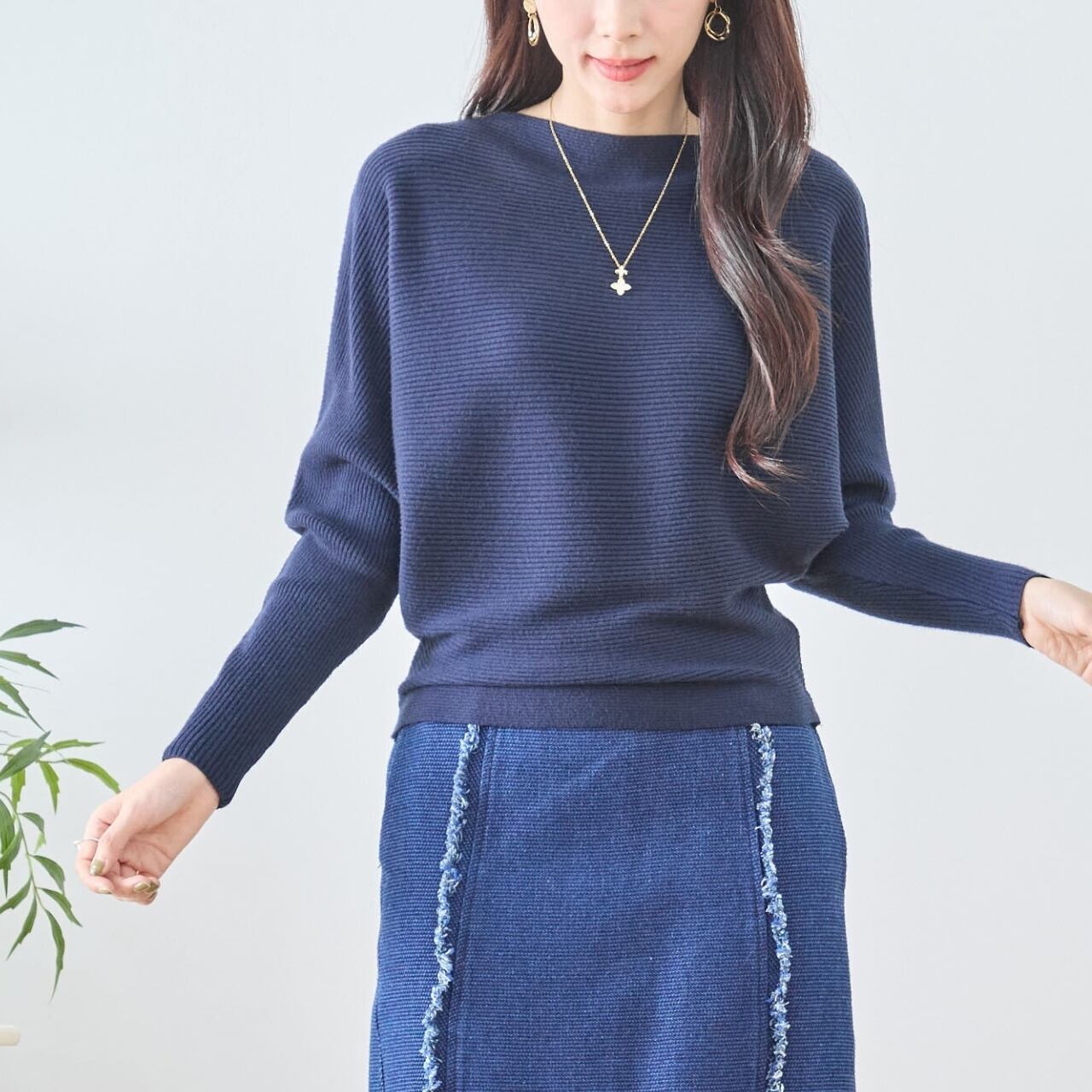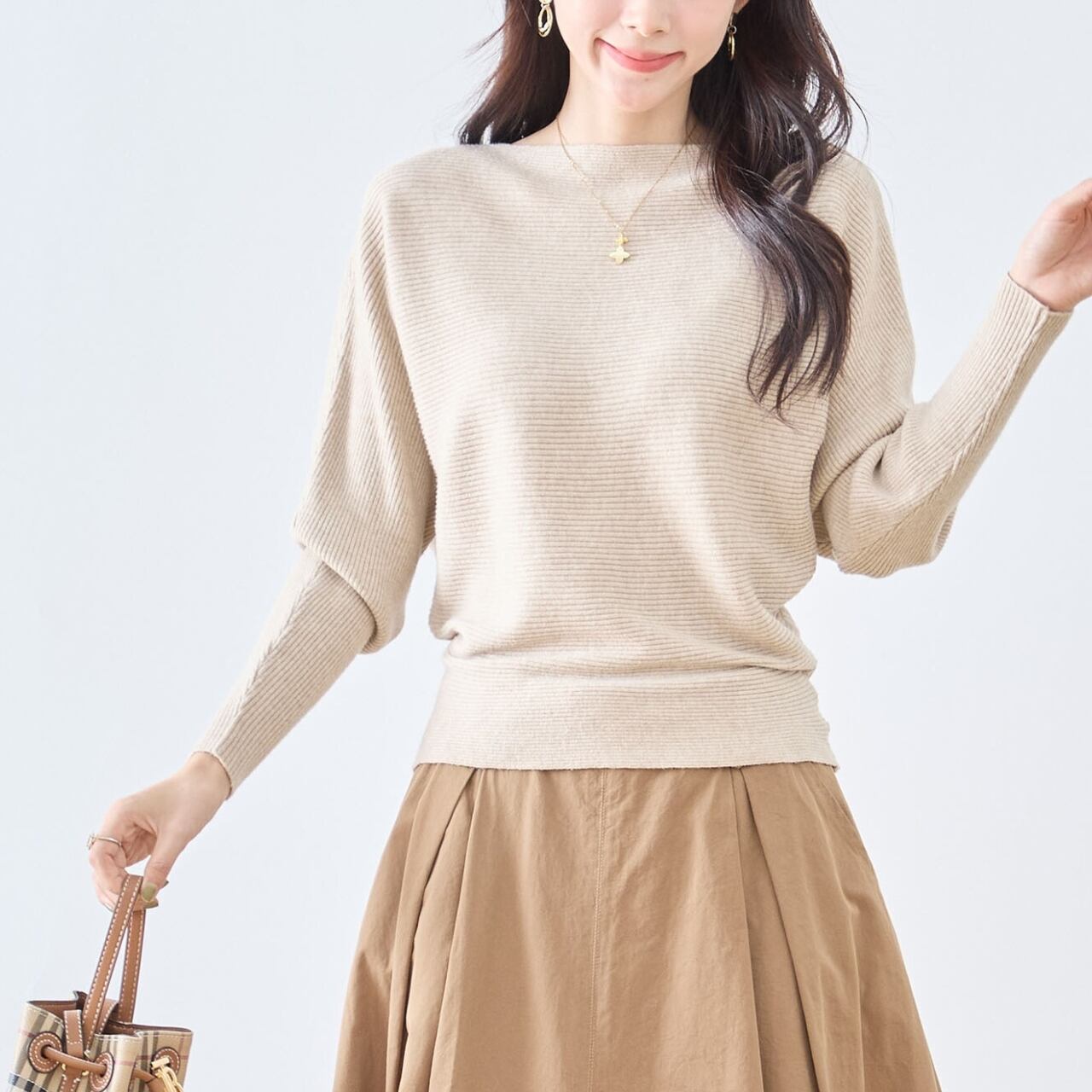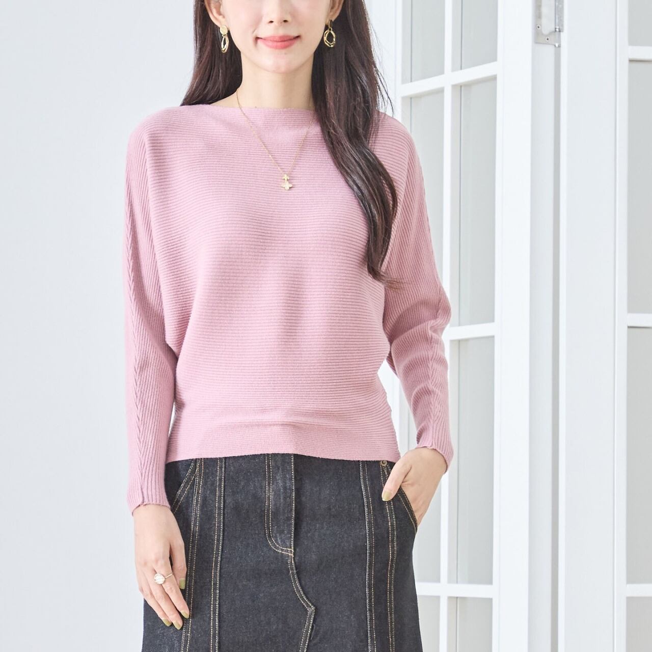 [新作][訳あり]ドルマンスリーブニットトップス カットソー 長袖 ボートネック ミセスファッション ブラック レッド ピンク グレー M L