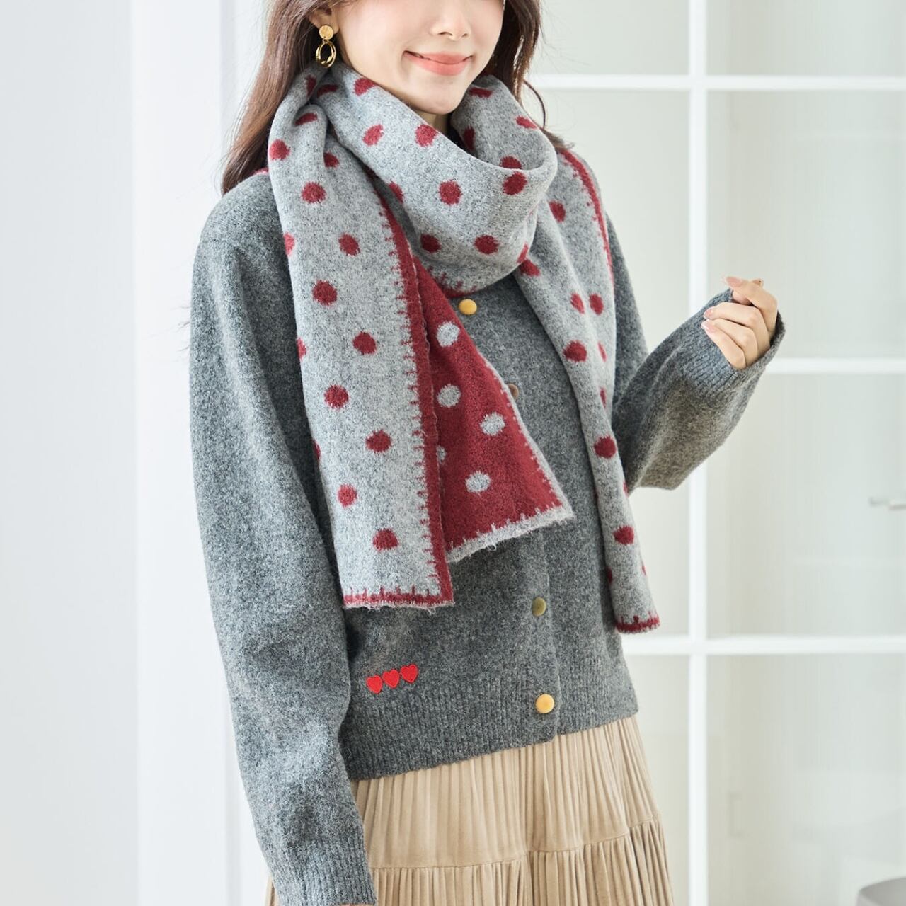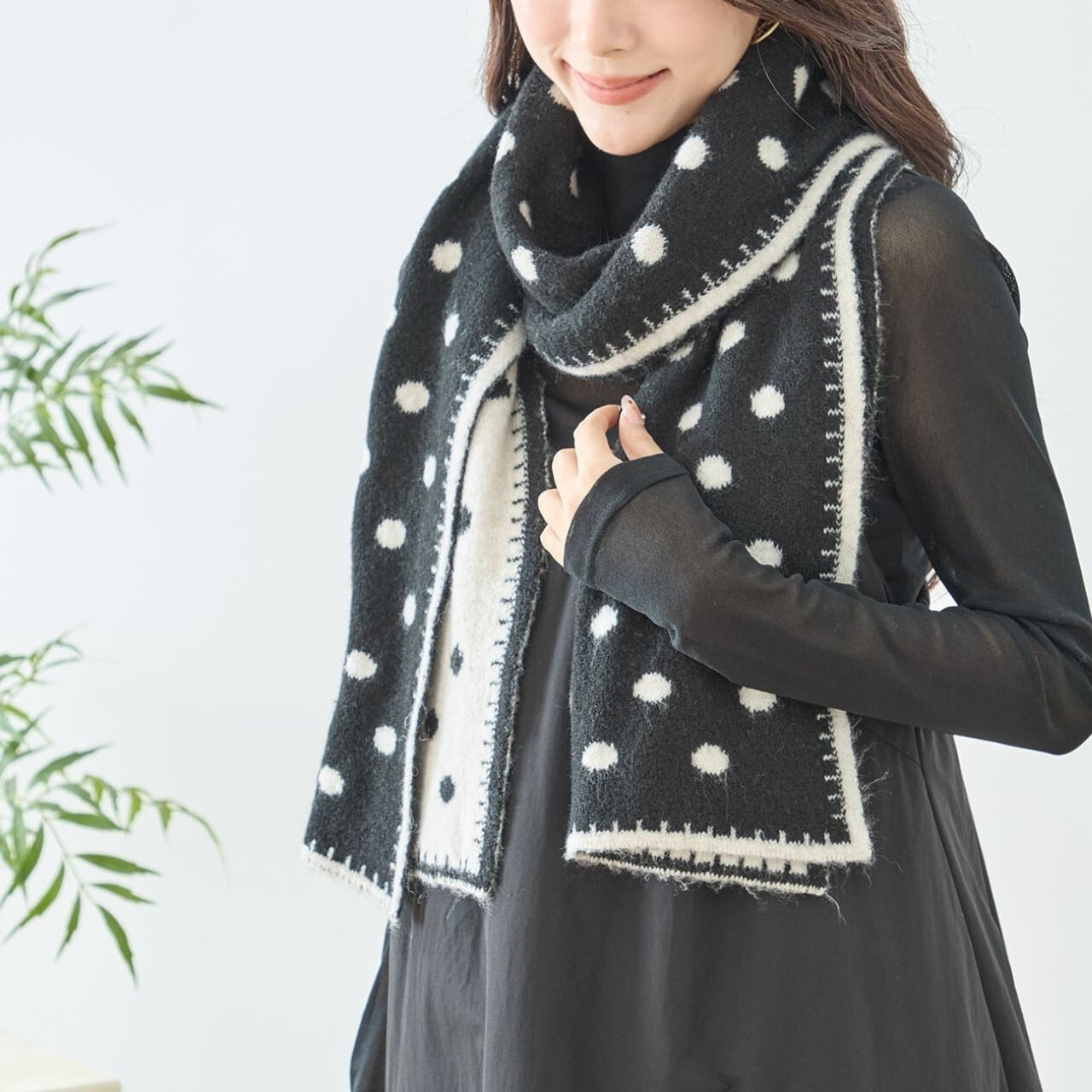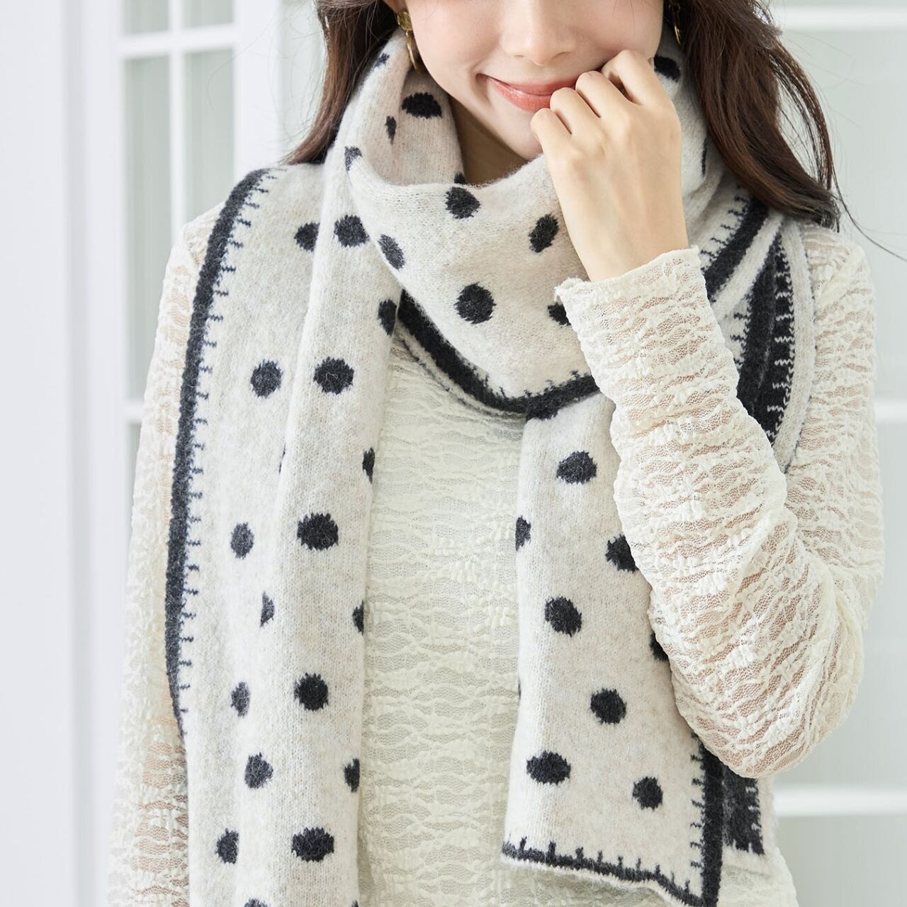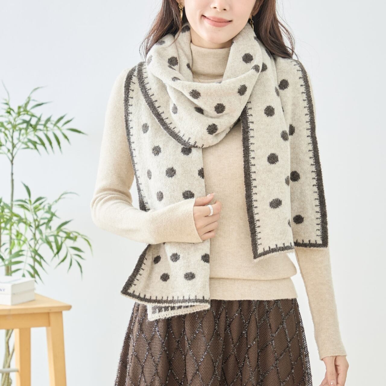 大人かわいいドット柄ニットマフラー