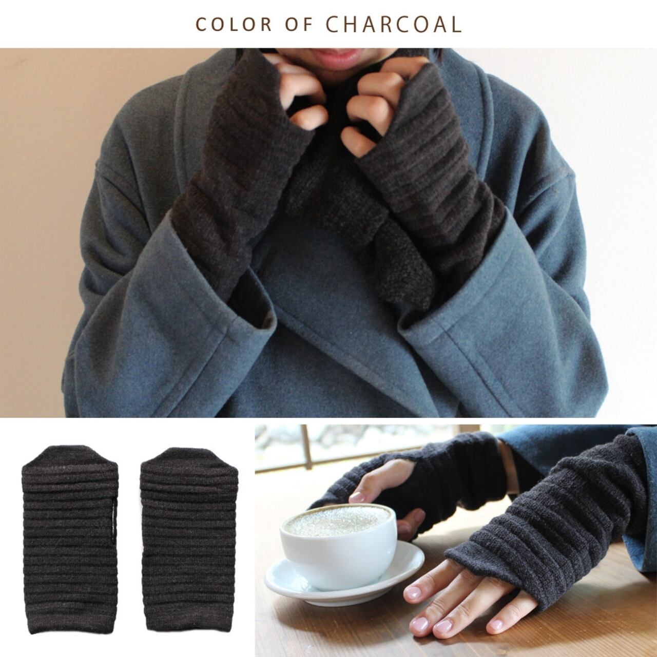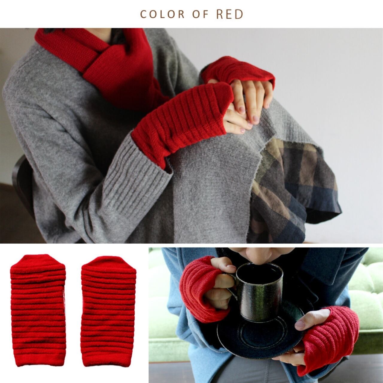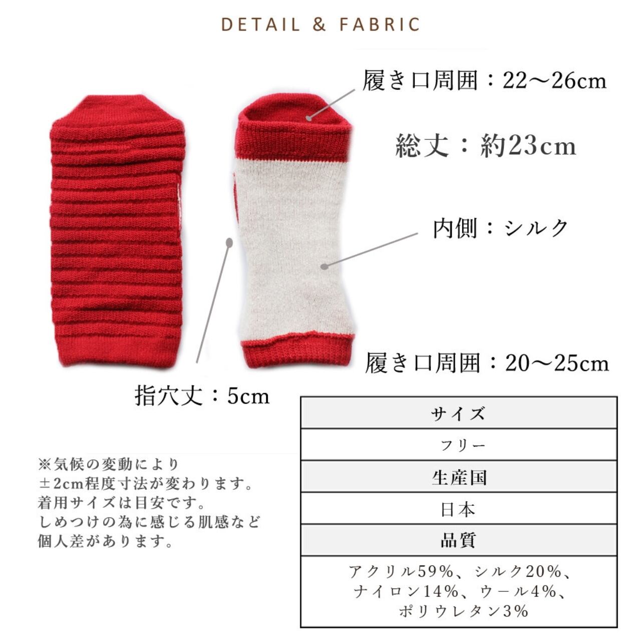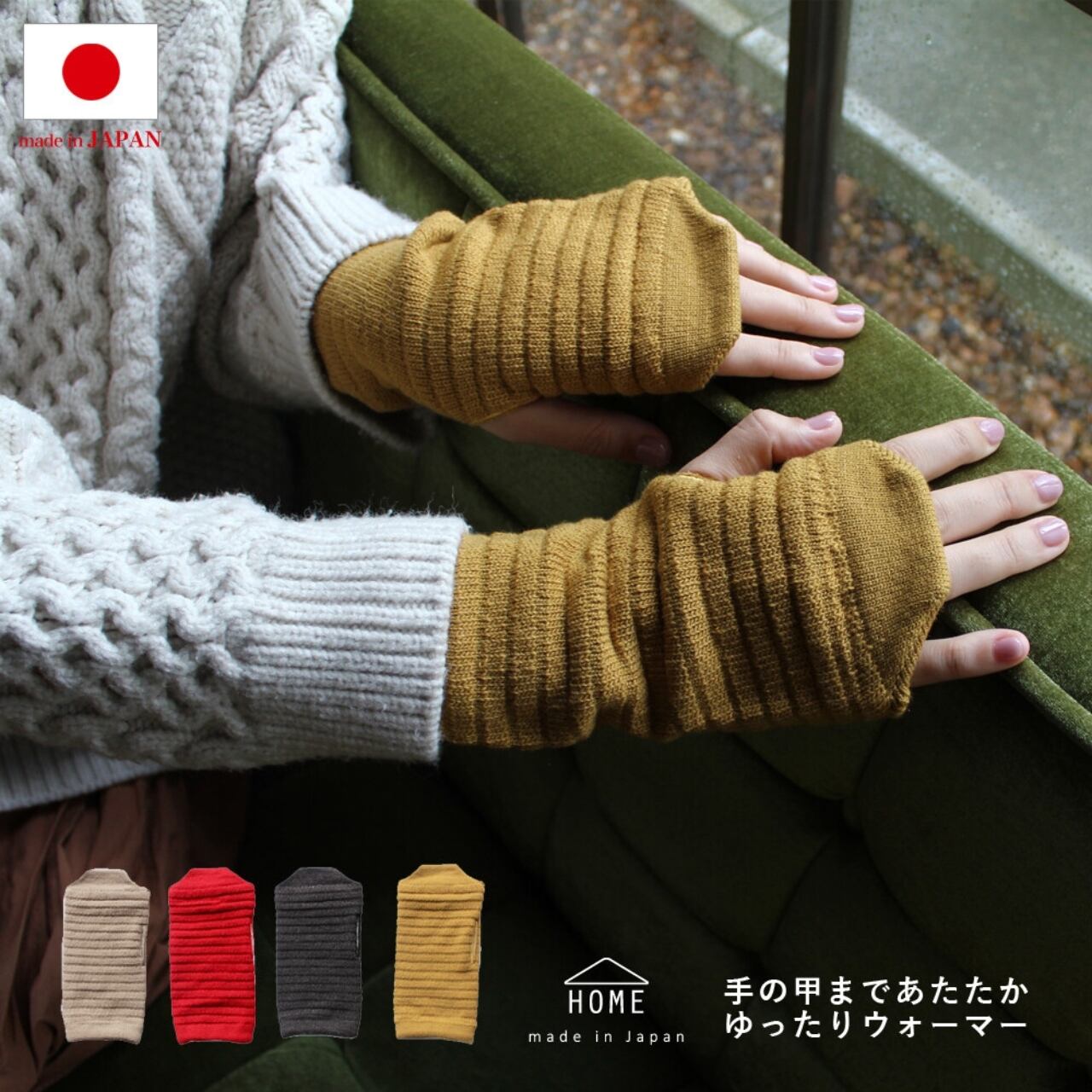 [新作・HOME][日本製]手の甲まであたたかゆったりアームウォーマー 防寒対策 冷え対策 手袋 リブ編み ベージュ レッド