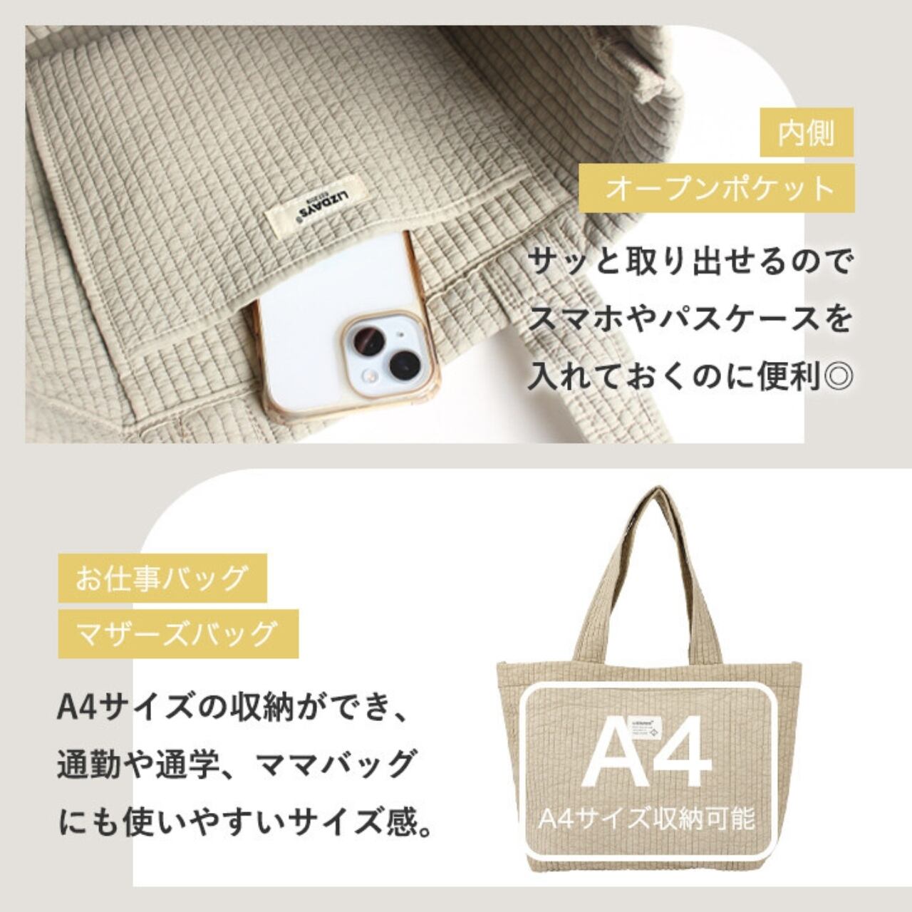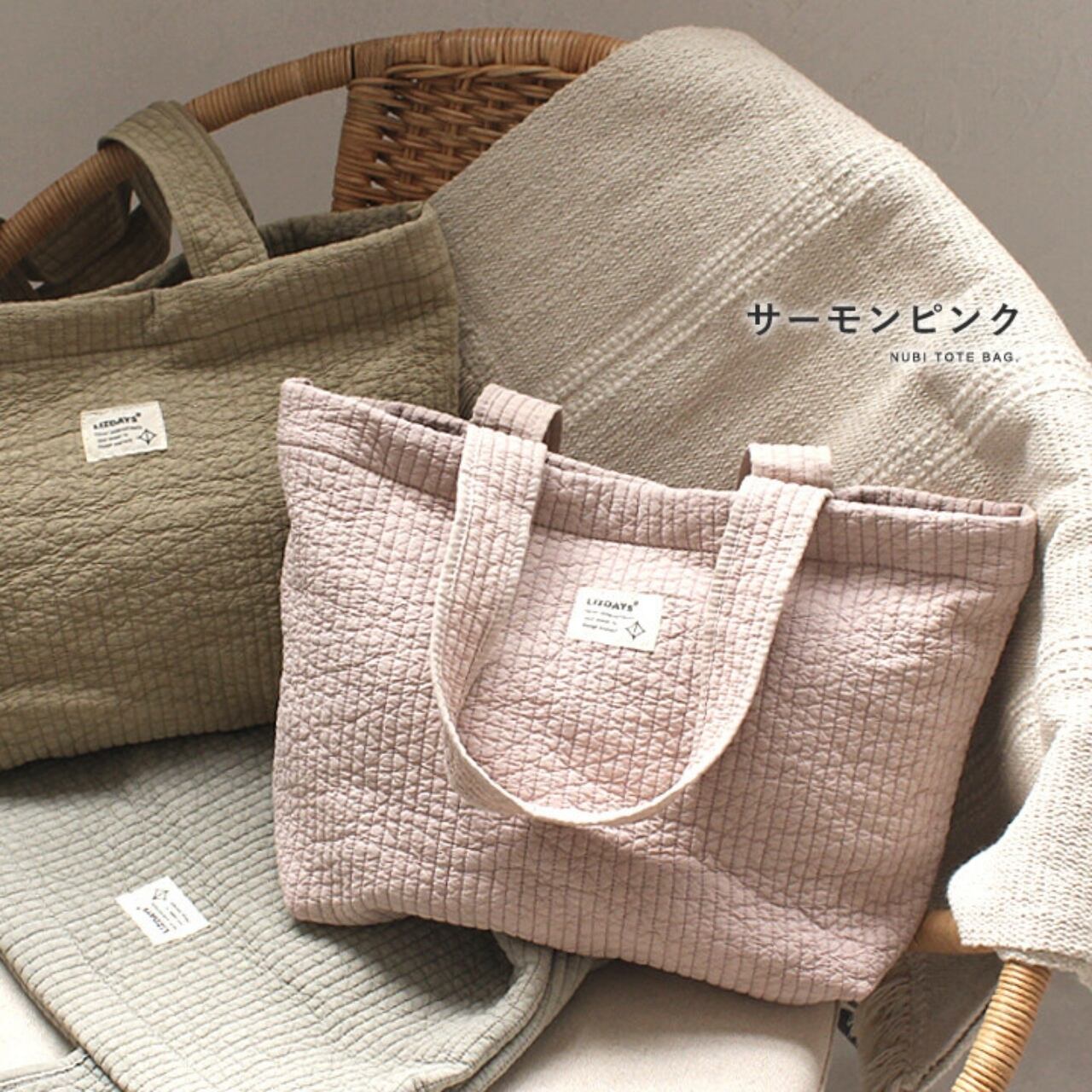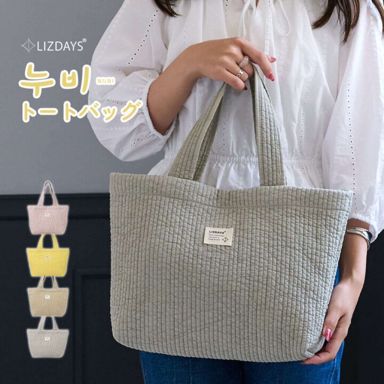 [LIZDAYS]ヌビバッグ トートバッグ ハンドバッグ キルティングバッグ 韓国風 軽量 A4 ミセスファッション 収納 ピンク ベージュ