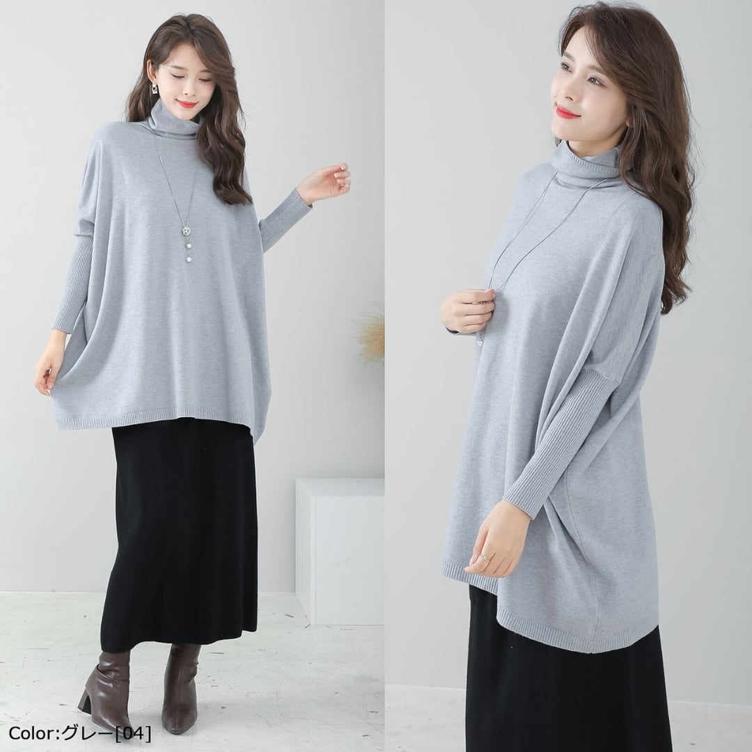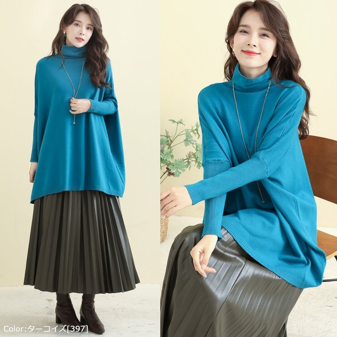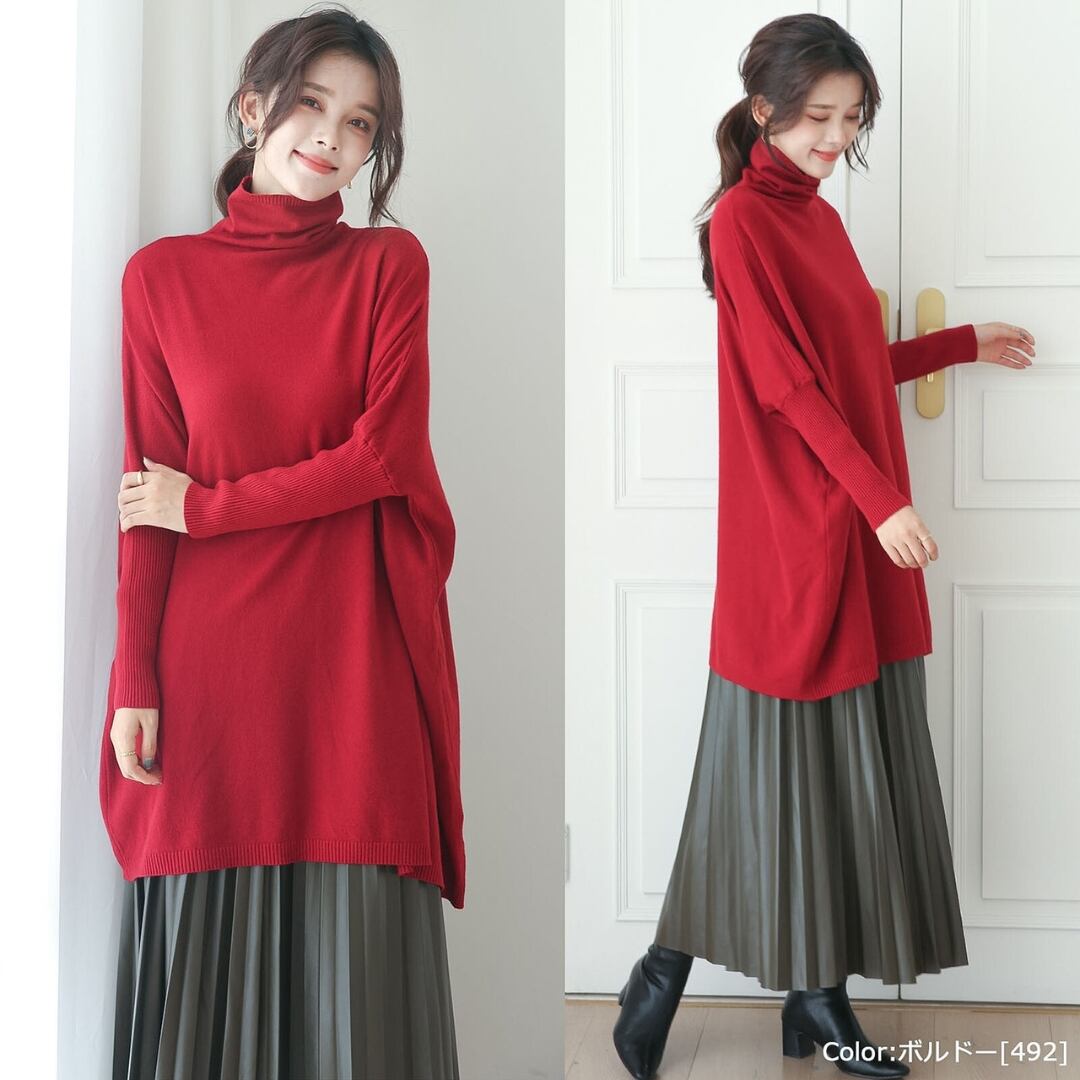 [再入荷][秋冬新作][TRUBE]ドルマンニットチュニック タートルネック 長袖 ワンピース 無地 ミセスファッション 全10色
