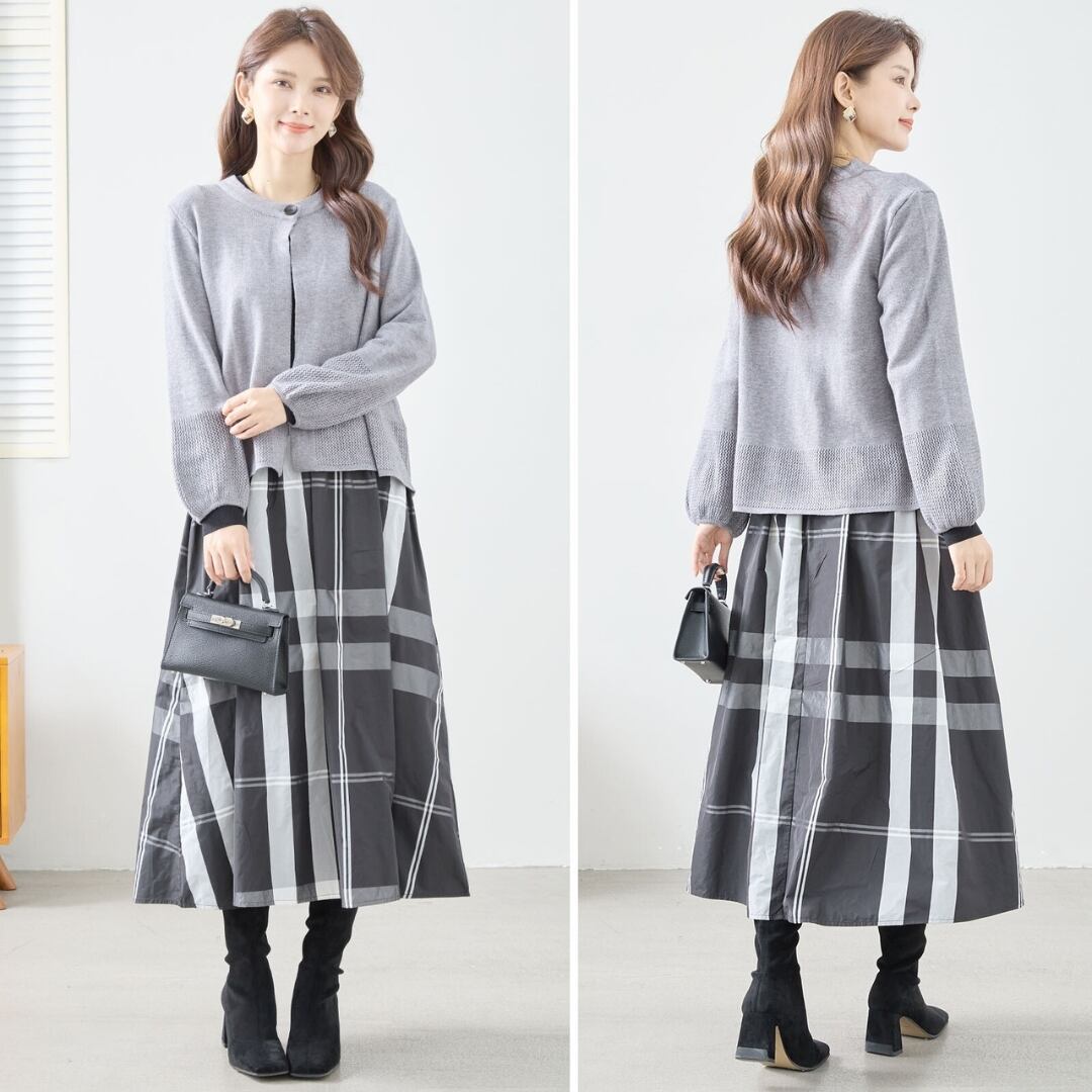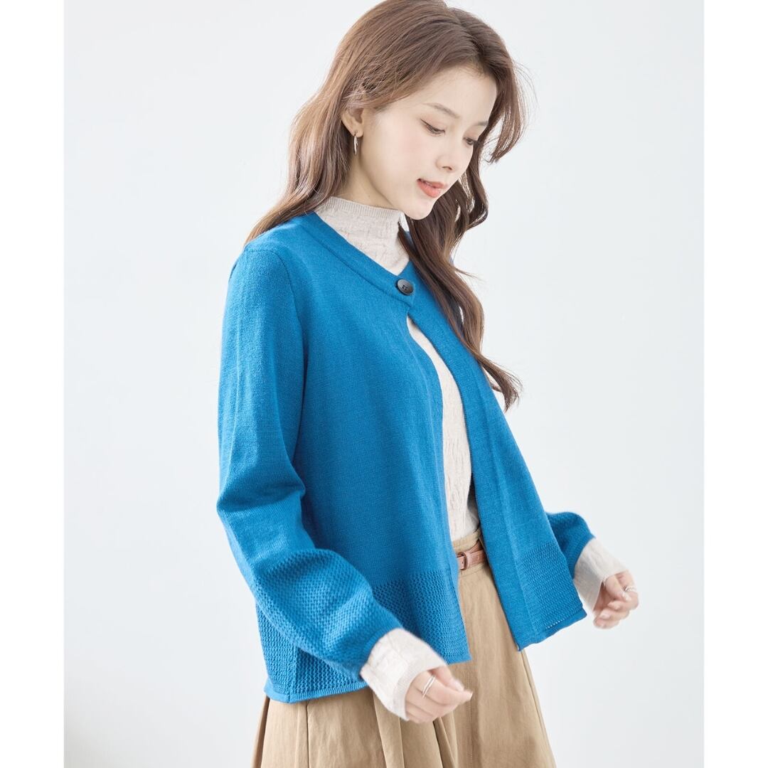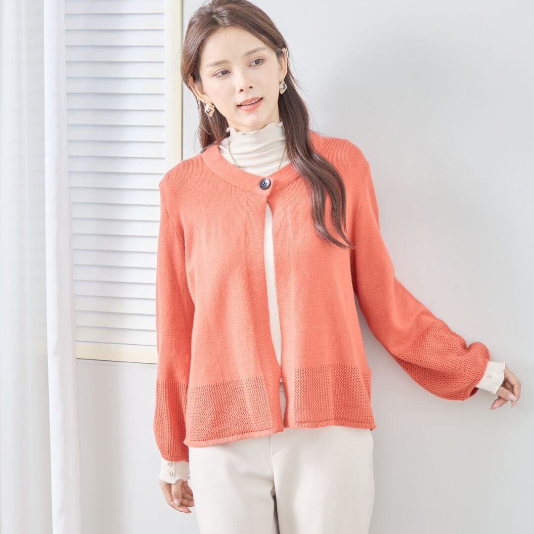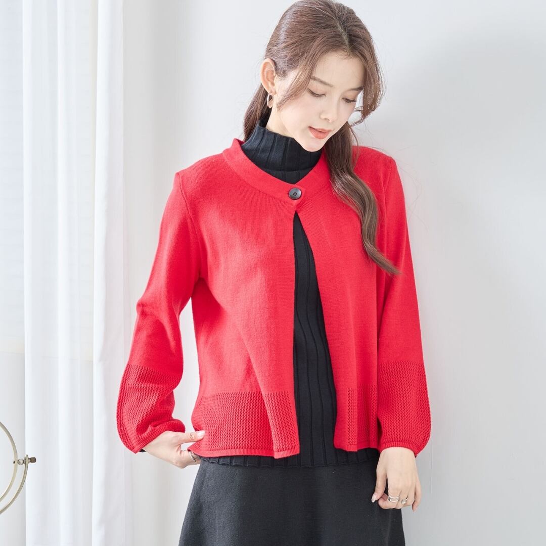 [秋冬][TRUBE]ワンボタンニットカーディガン 長袖 無地 襟なし ミセスファッション(全12色)