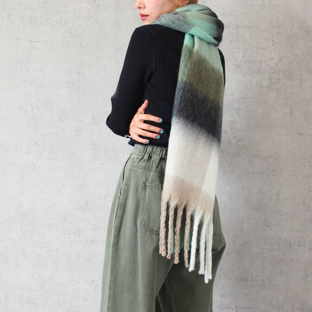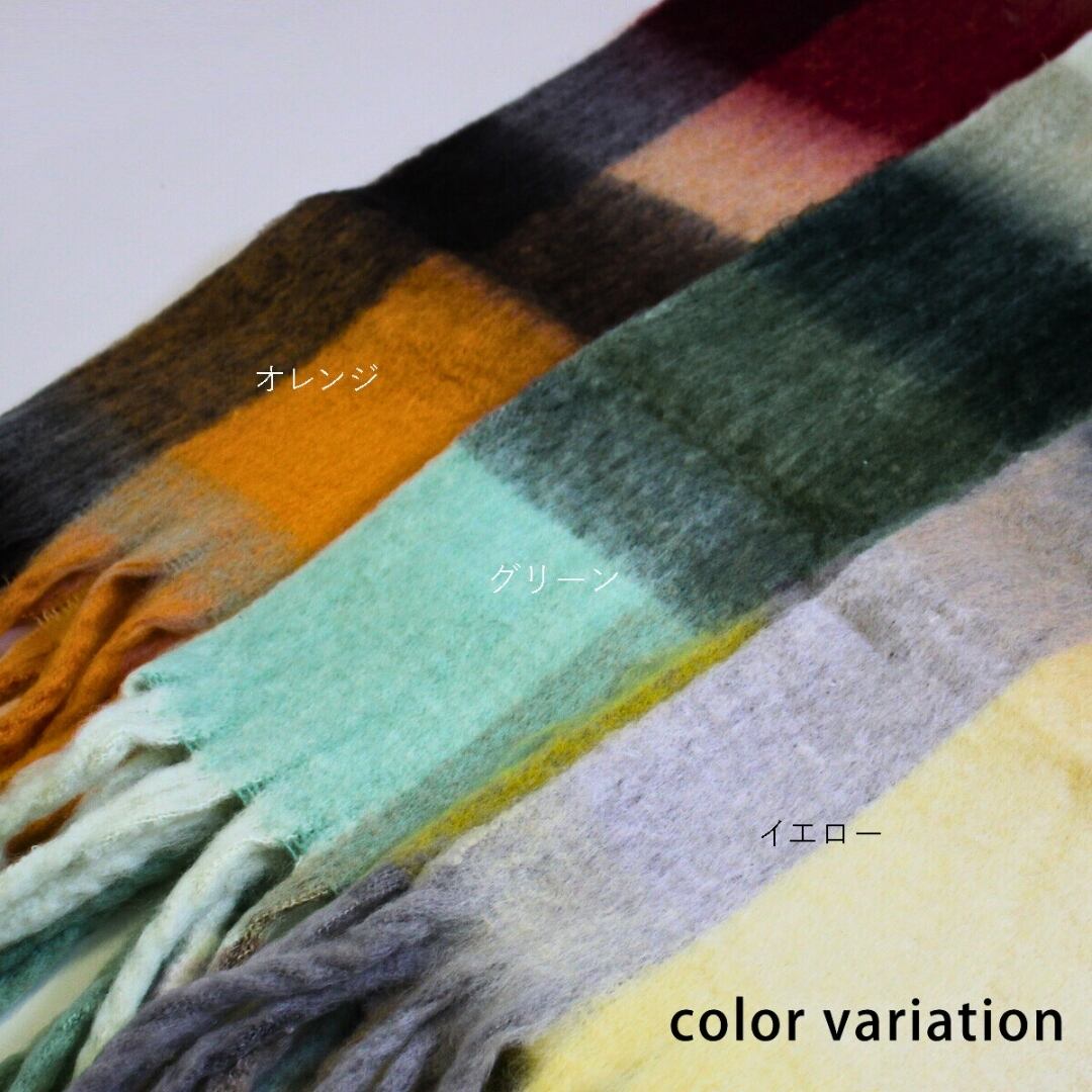 [2023秋冬新作]チェック柄マフラー ストール 起毛 フリンジ ロング 全3色(イエロー/グリーン/オレンジ)