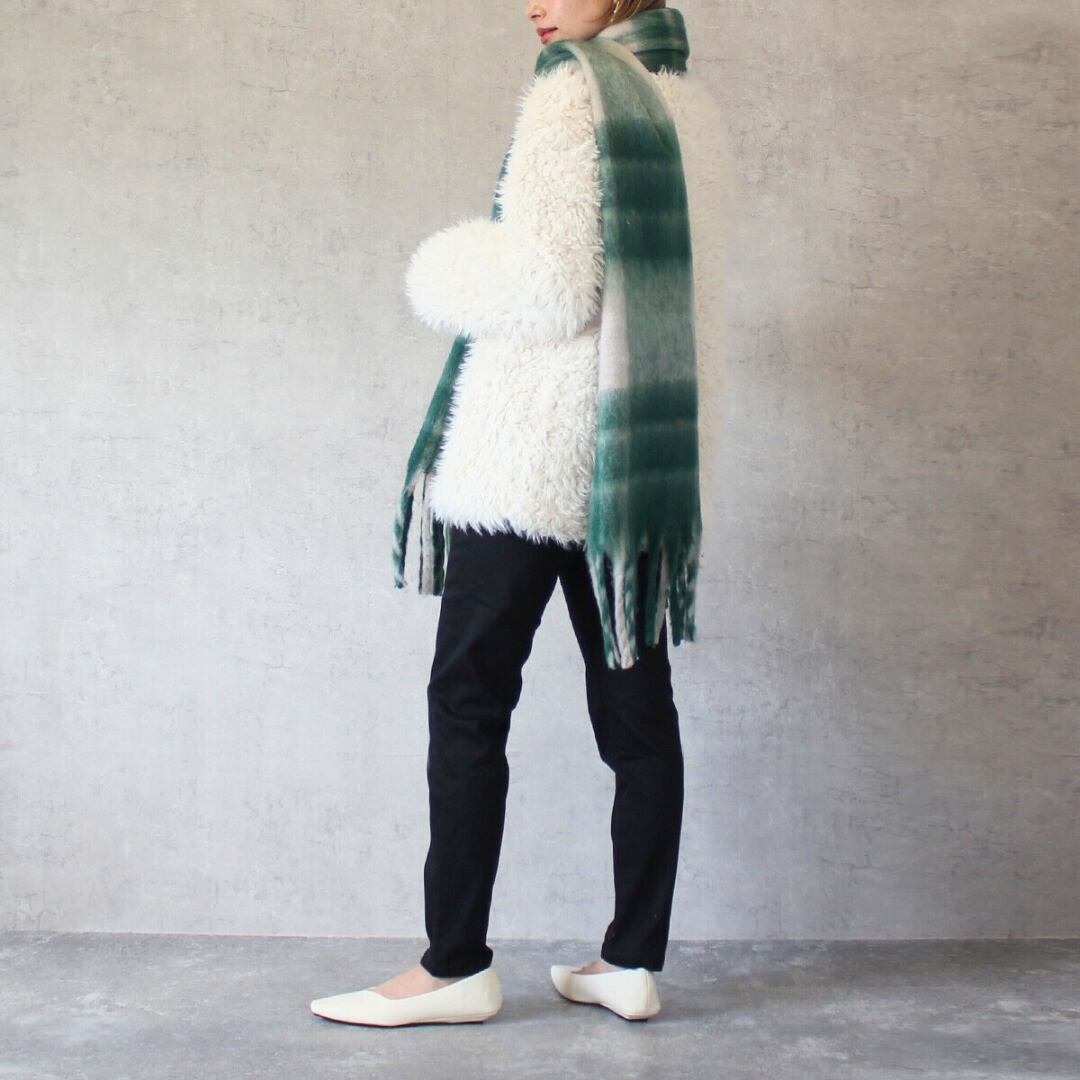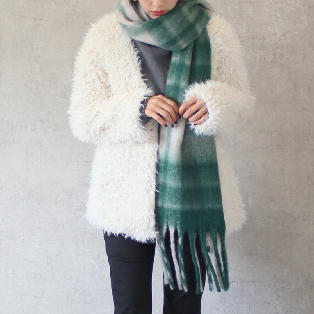 [2023秋冬新作]チェック柄マフラー ストール 起毛 フリンジ ロング 全3色(ブルー/グリーン/グレー)