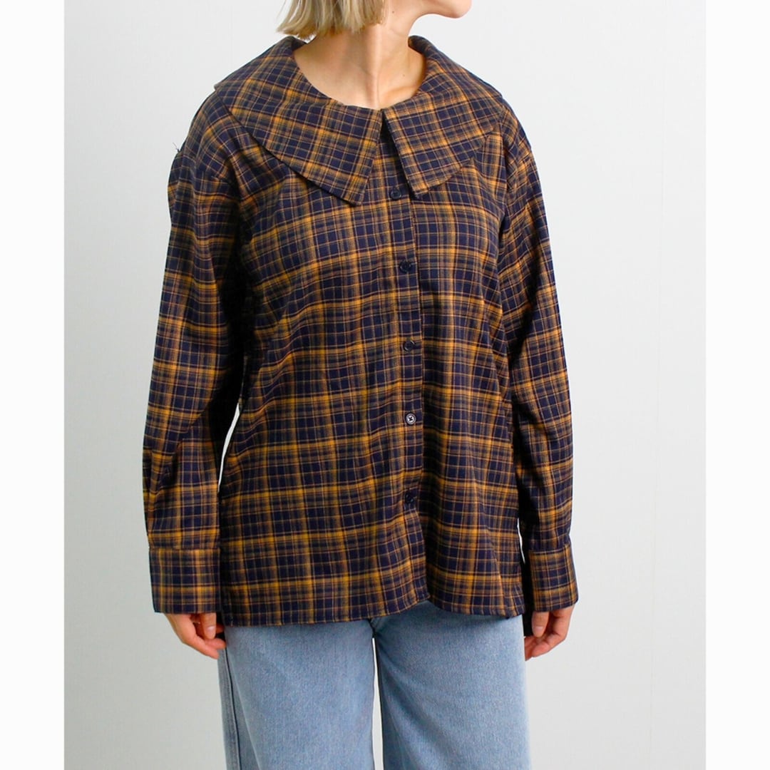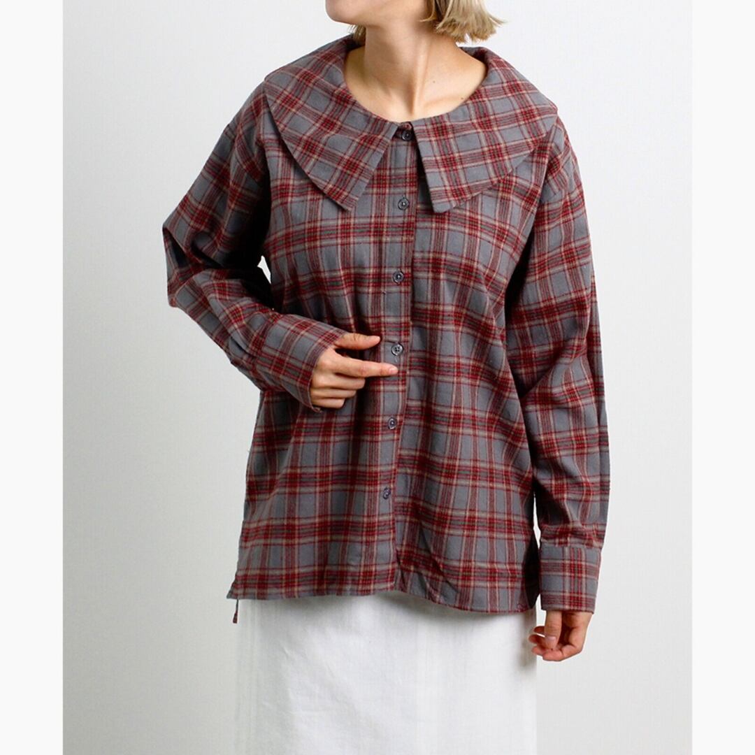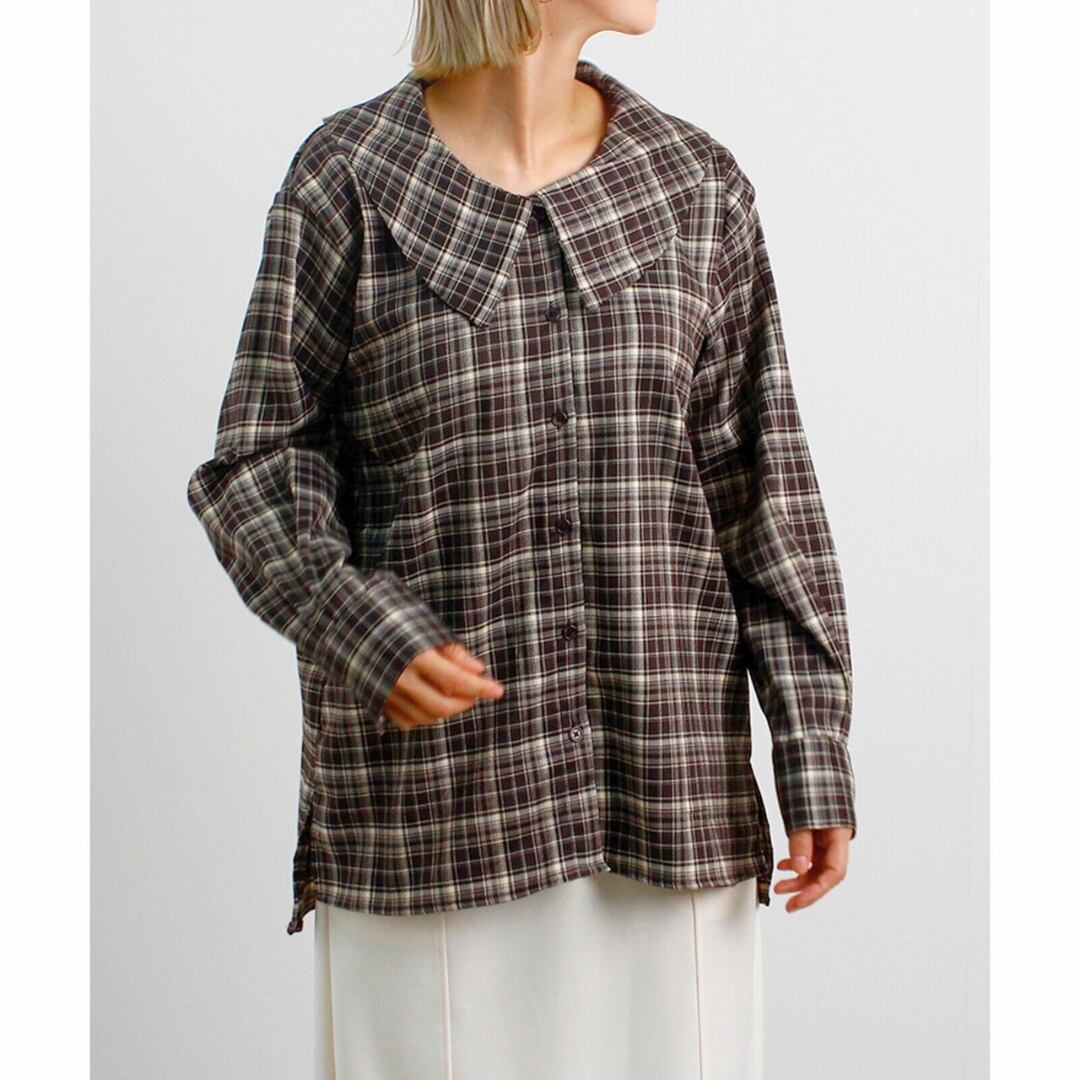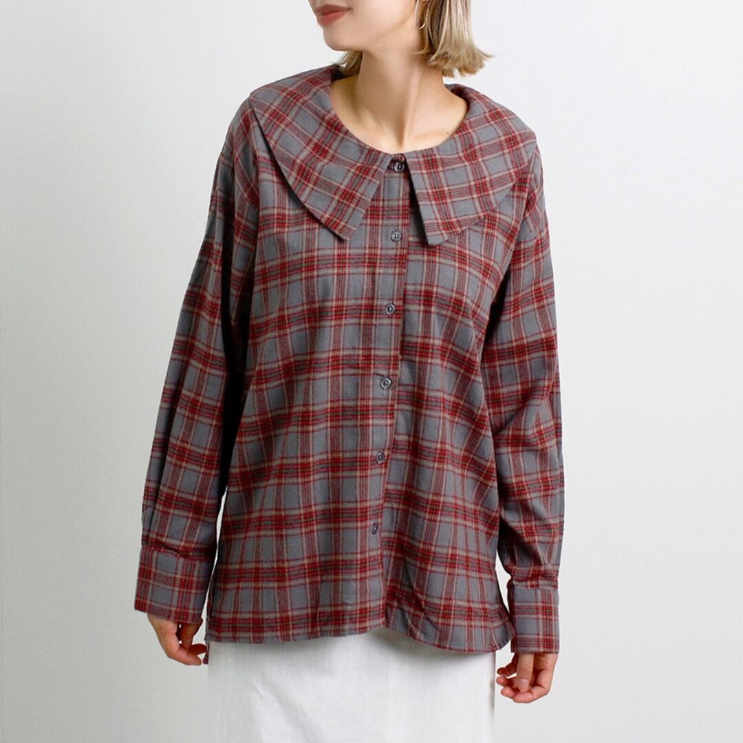 [新作][UNPLANNED DAYS]チェック柄ビッグカラーブラウス 長袖シャツ 起毛 カジュアル 全4色