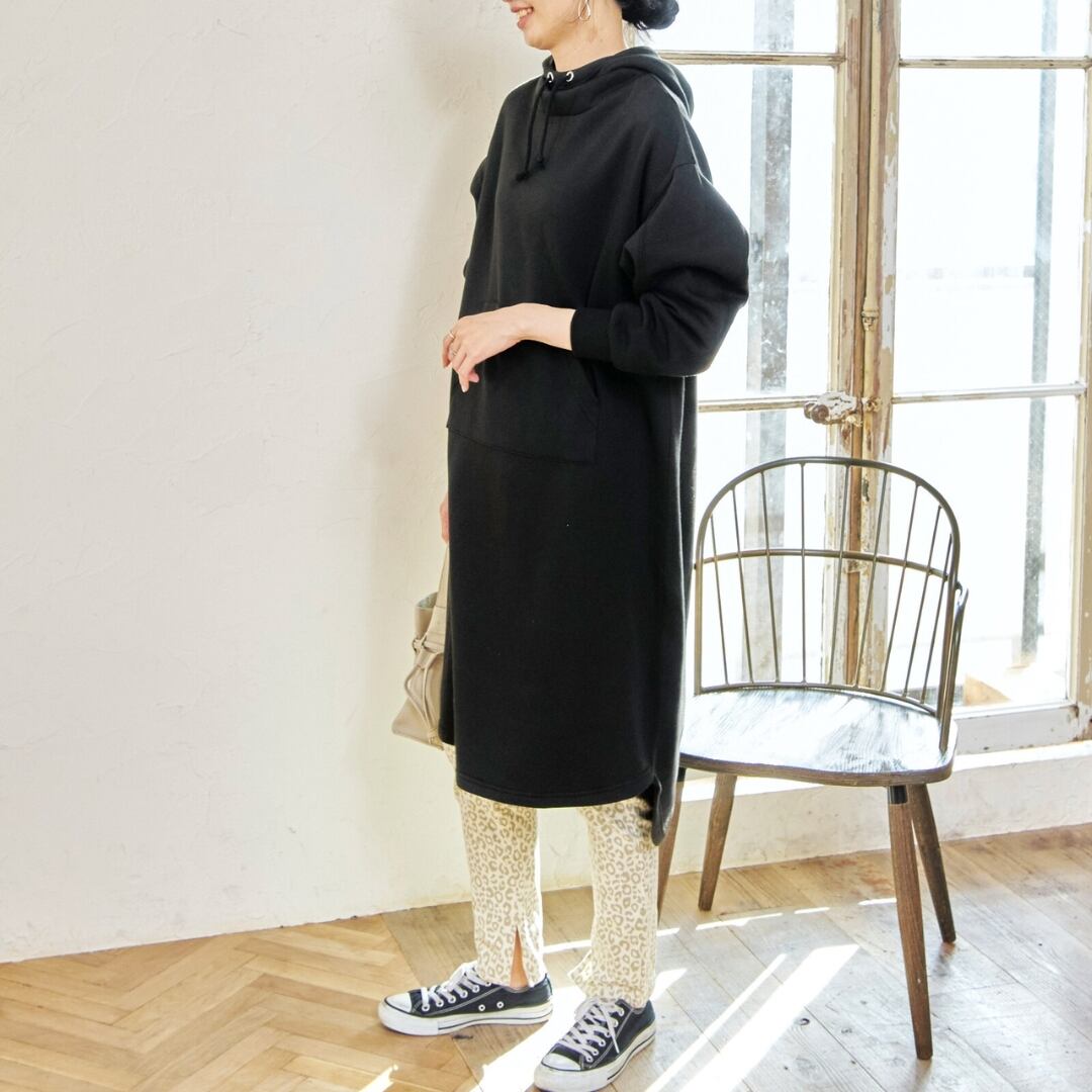 カジュアルなフード付きパーカーワンピース