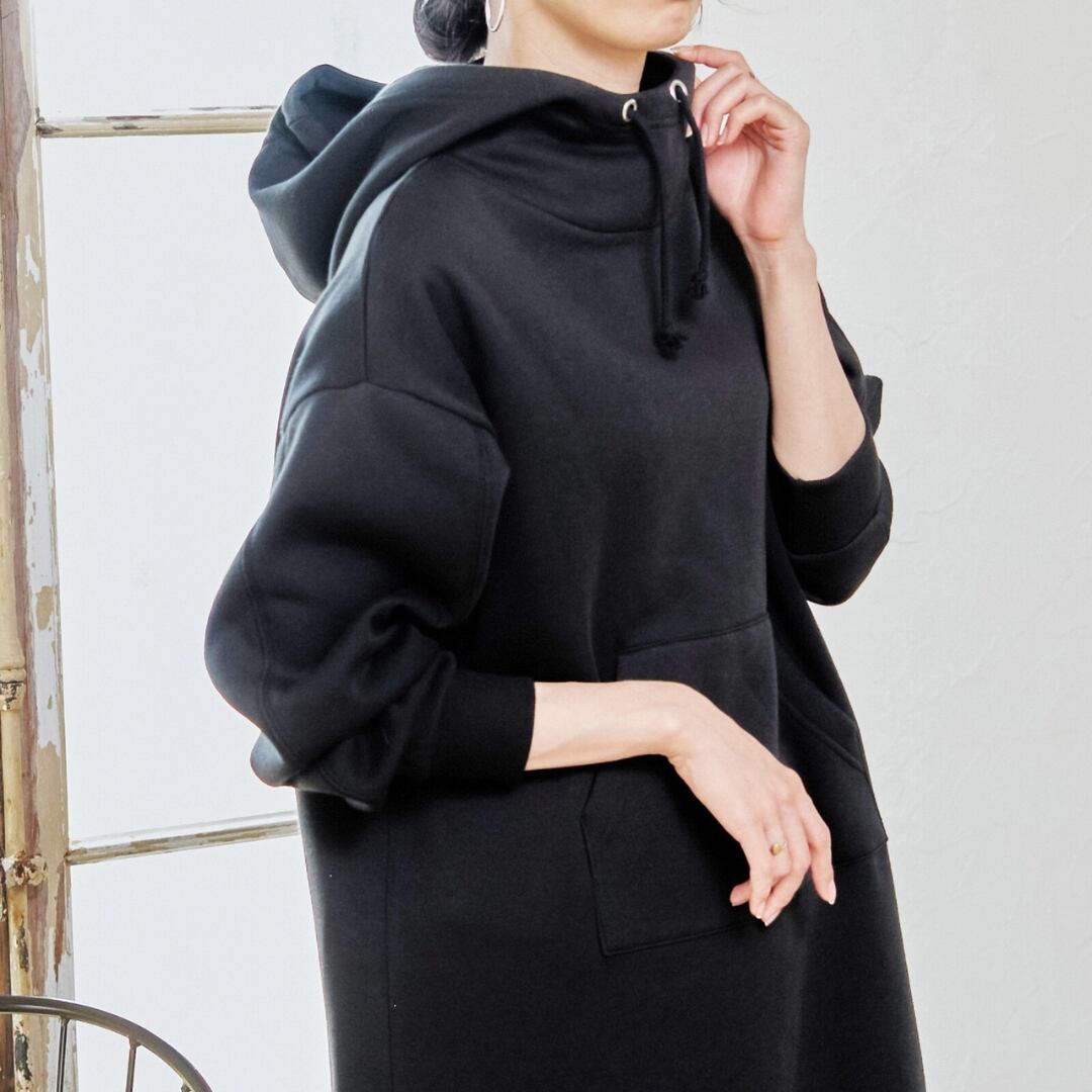 [新作]ハイネックパーカーワンピース チュニック 長袖 裏起毛 カジュアルワンピース 全4色