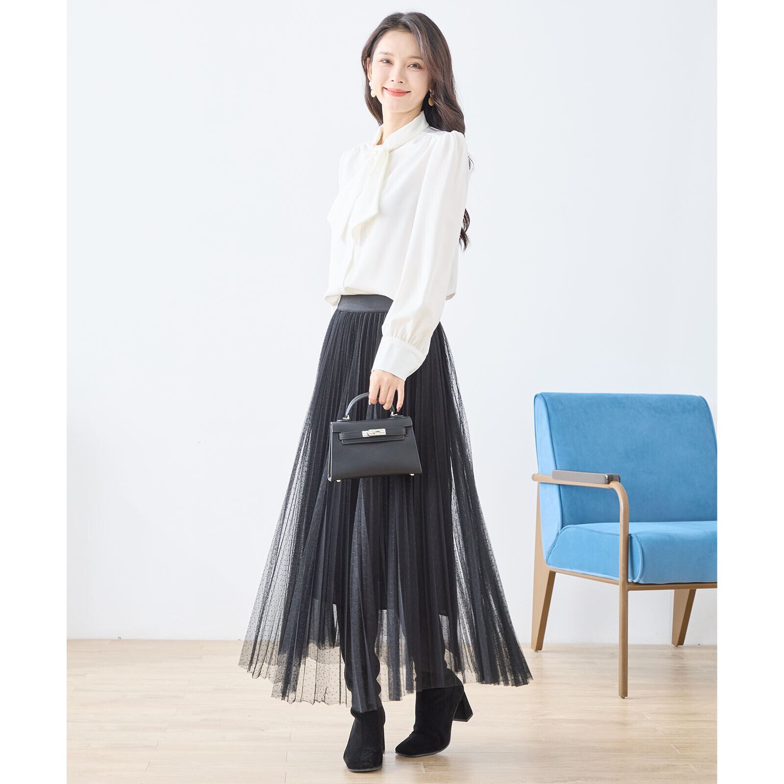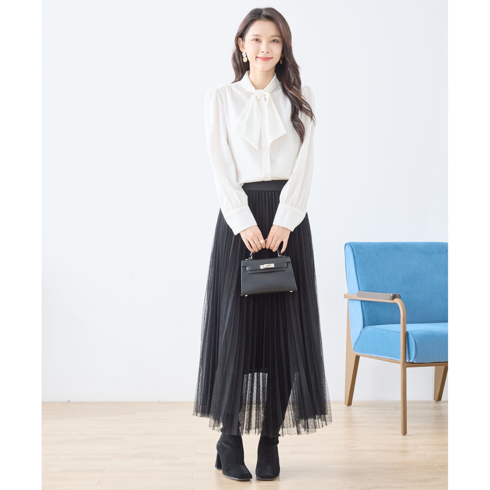[新作][reve bleu]ボウタイデザインブラウス 長袖シャツ 大人コーデ ミセスファッション 無地 全2色