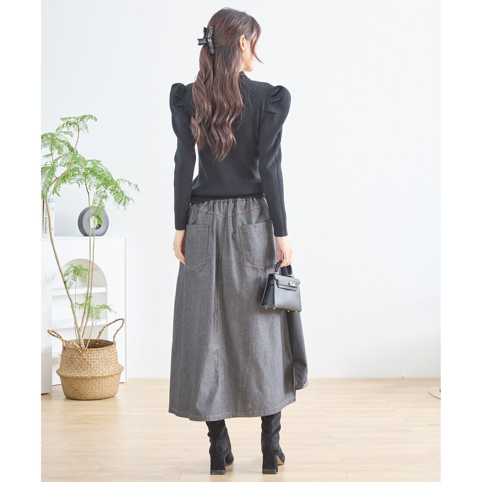 異素材ロングスカート。