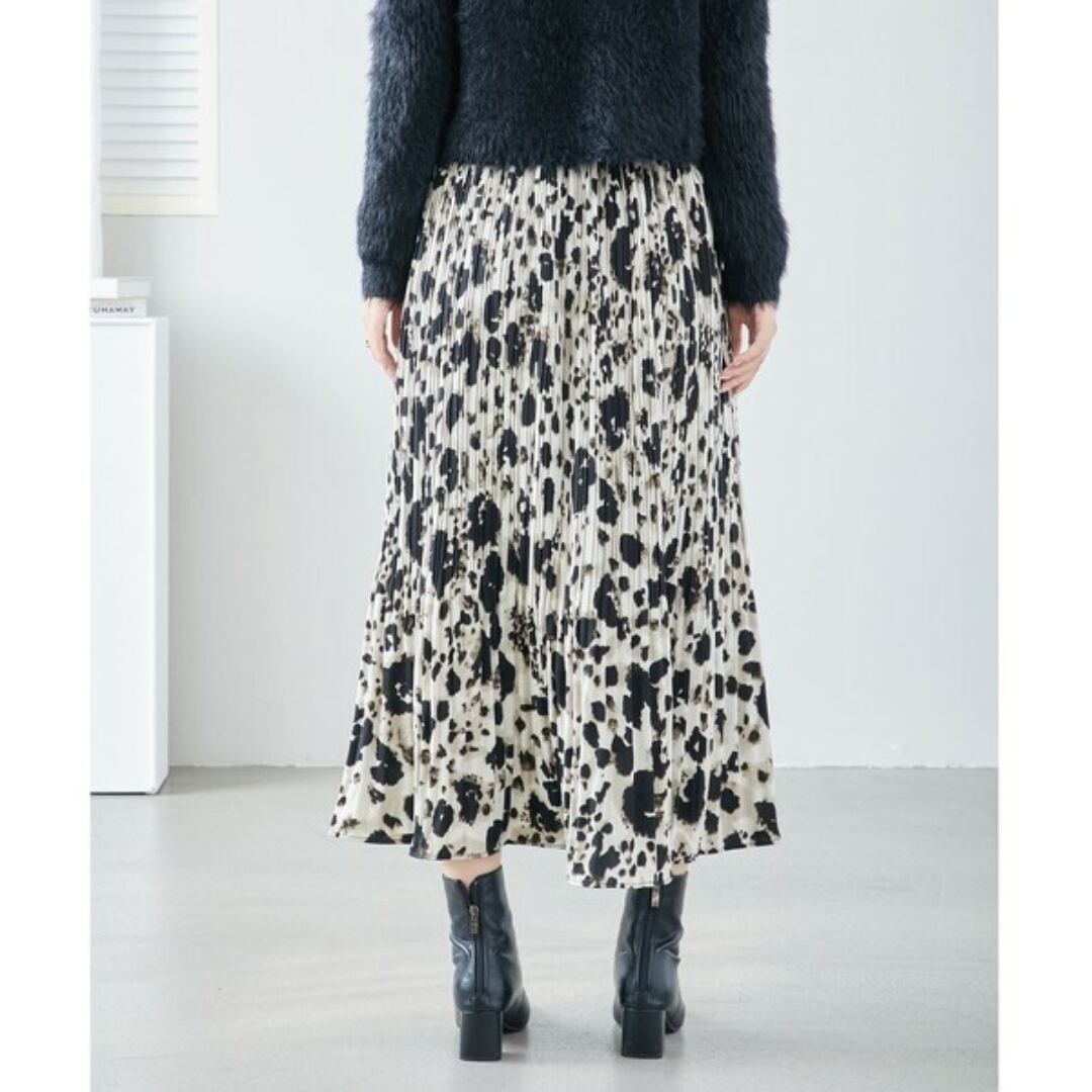 [新作][TRUBE]アニマル柄ロングスカート プリーツフレアスカート ヒョウ柄 レオパード柄 大人コーデ ひざ下 裏地 カジュアル 全2色