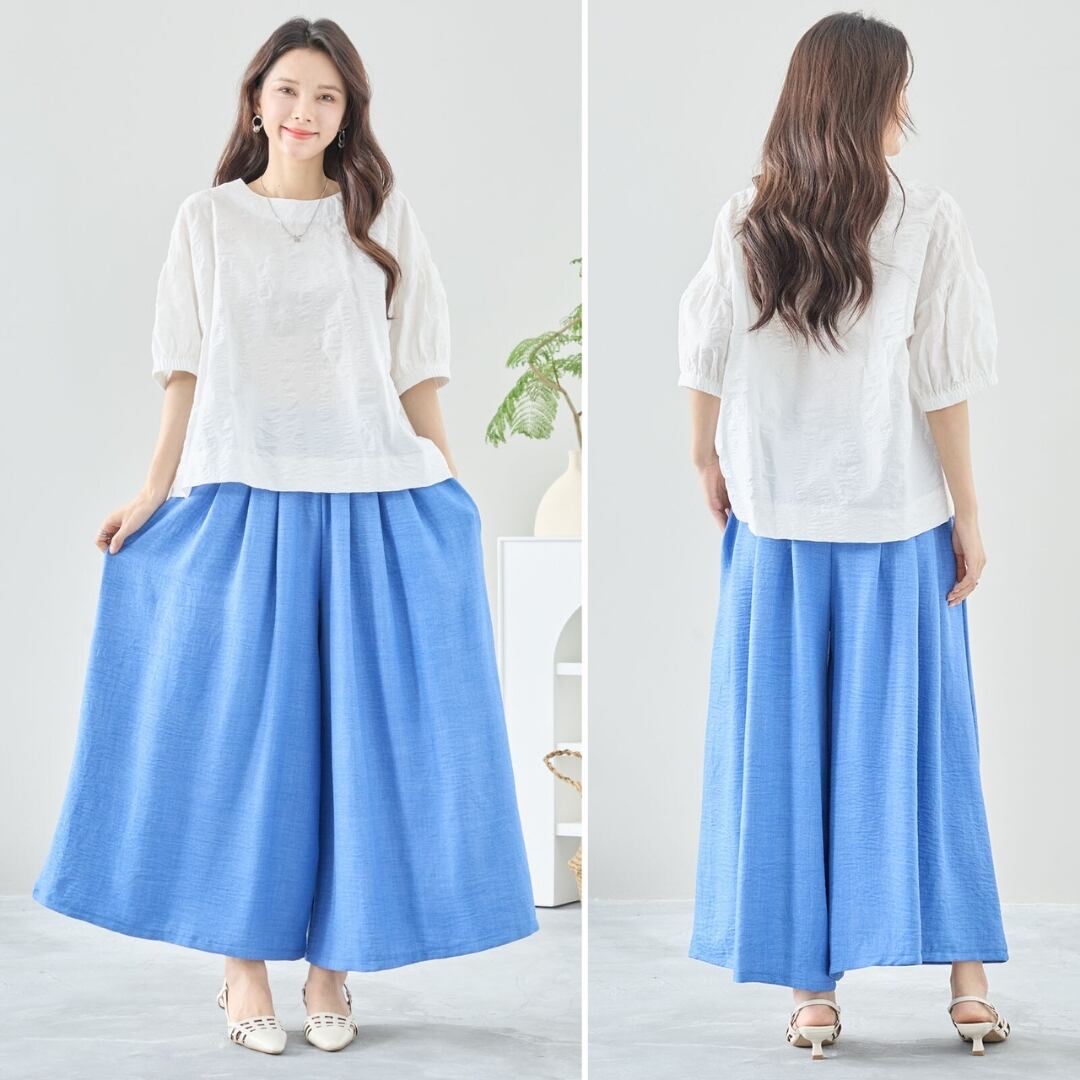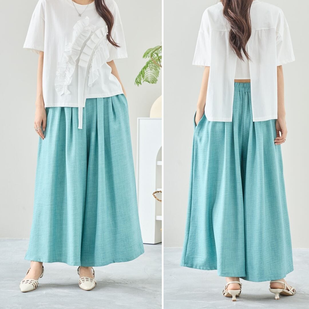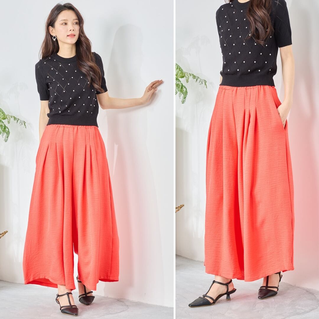 [2024新作][TRUBE]タックガウチョパンツ ワイドパンツ 無地 ロングパンツ 全9色