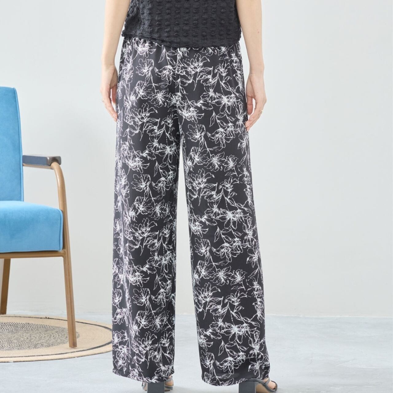 [TRUBE]プリントバギーストレートパンツ 花柄 ロングパンツ ワイドパンツ 大人カジュアル フローラルプリント 全2色