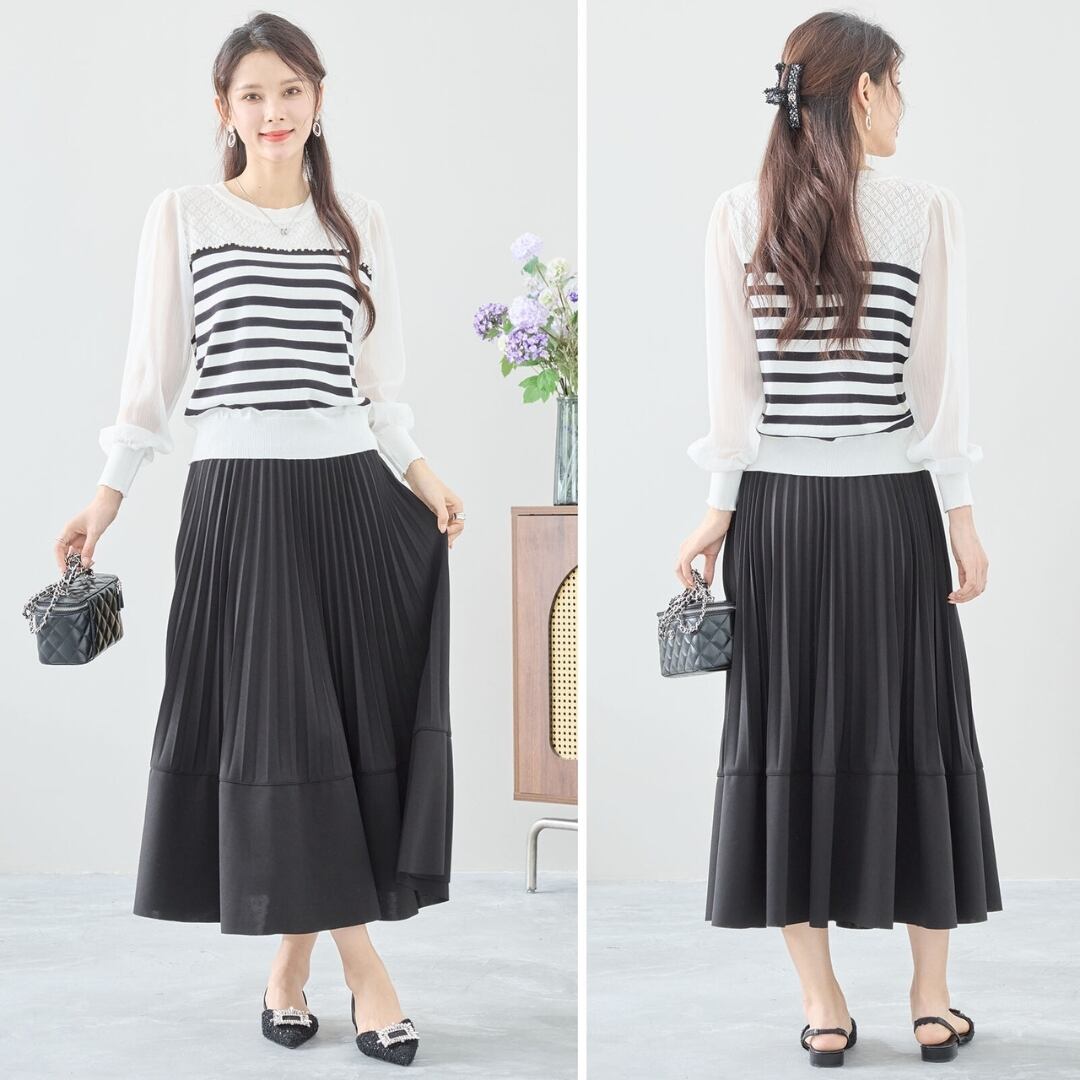 [2024新作][reve bleu]プリーツフレアロングスカート 大人カジュアル 全6色