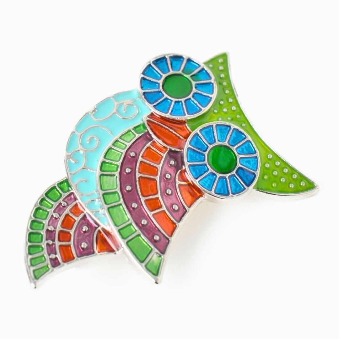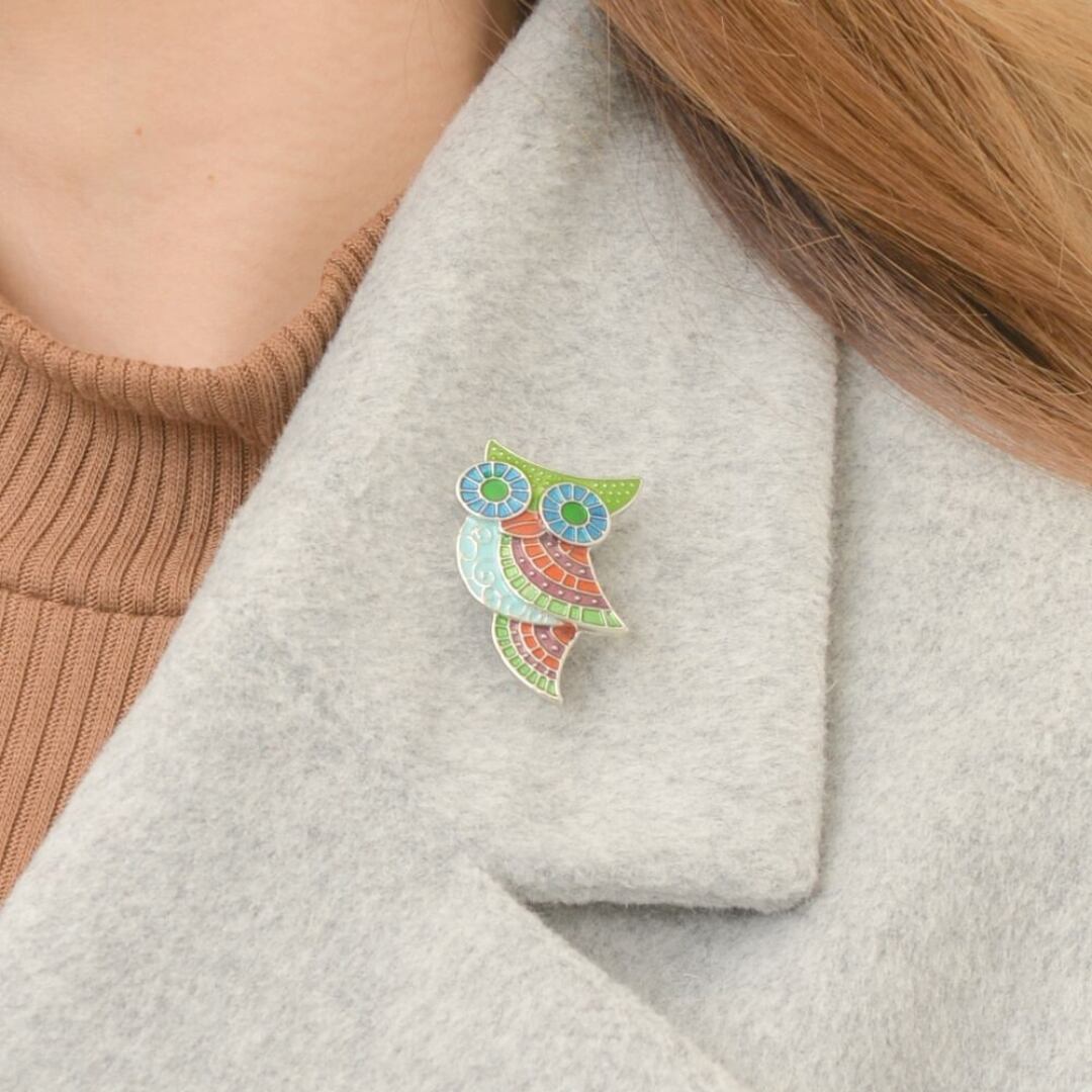 [luno lumo]幸運をもたらす鳥「フクロウ」ブローチ ピンバッジ コサージュ アクセサリー 梟 ミミズク メタル カラフル