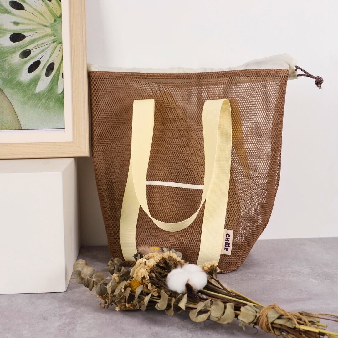 [CHOOP]メッシュトートバッグ 巾着 肩掛け アウトドア 旅行 大容量 レディース メンズ ユニセックス 全3色 ブラック ナチュラル グレーベージュ
