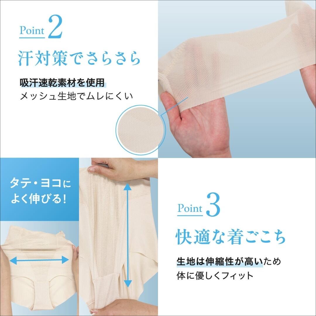 生地は伸縮性があり体にやさしくフィット