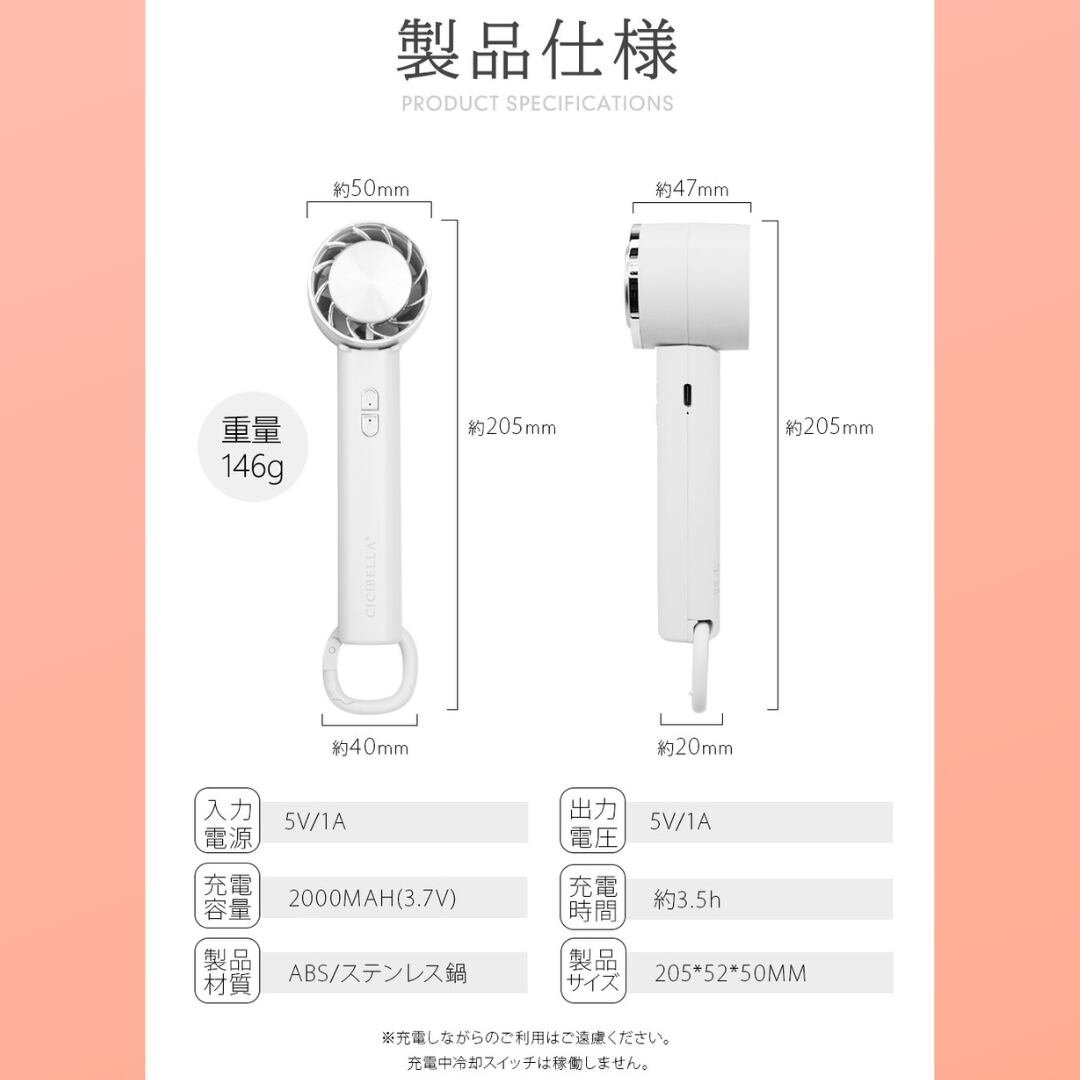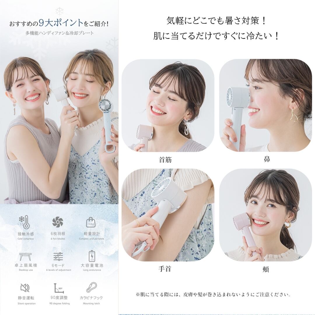 [CICIBELLA シシベラ]冷却ハンディファン 夏用 卓上扇風機 小型 携帯扇風機 ポータブル扇風機 冷却プレート 生活家電 全10色