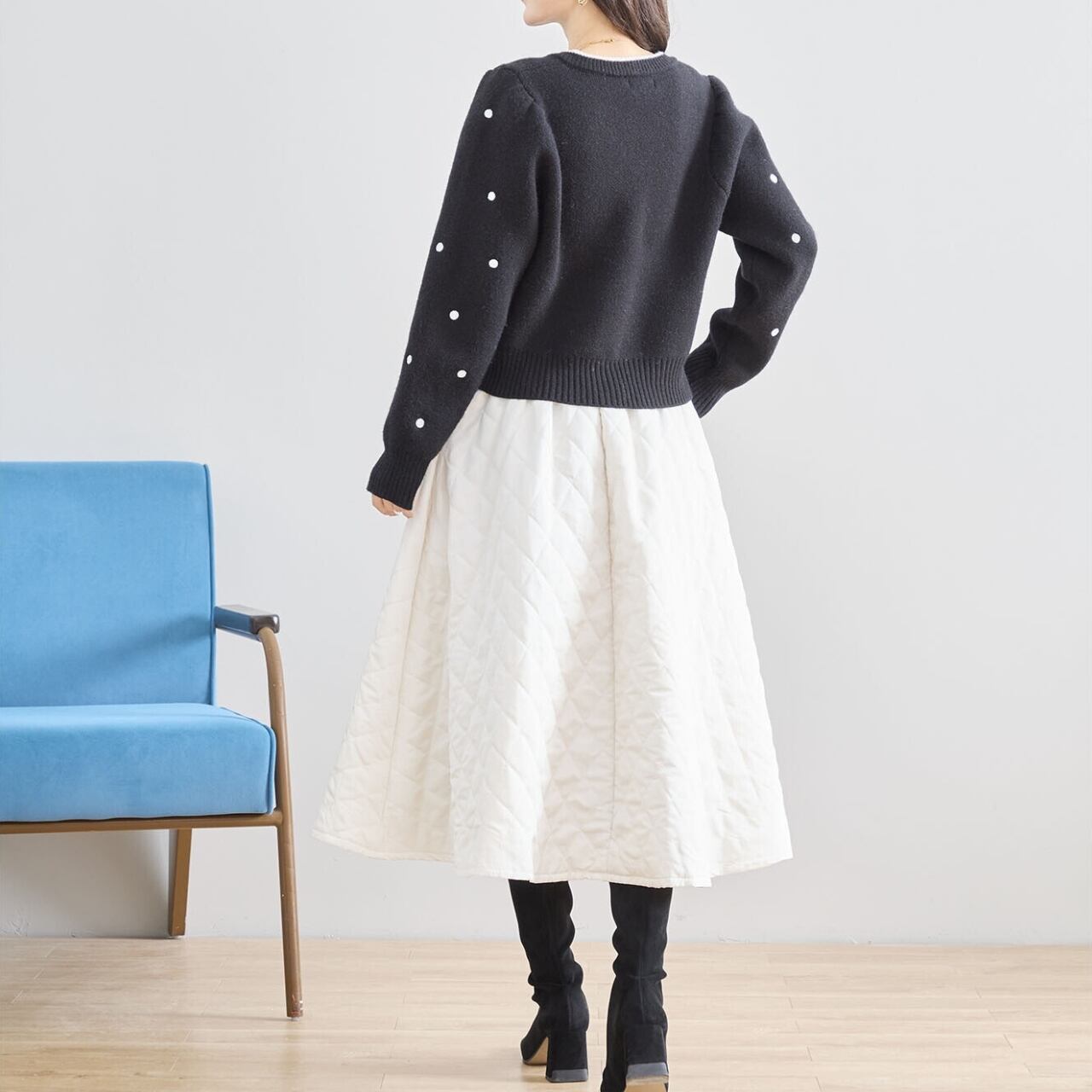 [新作][amie studio]ポルカドットショートカーディガン ニット 水玉 長袖 クルーネック 大人かわいい ミセスファッション ブラック グレー アイボリー