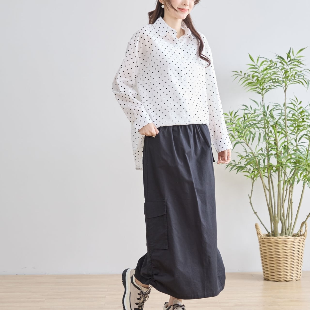甘すぎない大人かわいいデザインの長袖シャツ